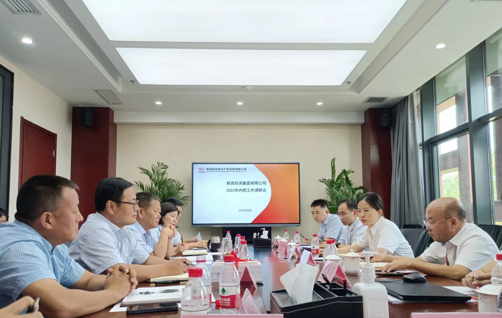 為進一步推進內控體系建設,8月11日上午,集團公司黨委委員、總會計師鄭波一行在陜投新興進行內控工作調研,陜投新興黨委書記、董事長徐天有,黨委副書記、總經理劉凌及相關負責人等10余人參加會議,會議由集團公司財務管理部主任邊芳軍主持。