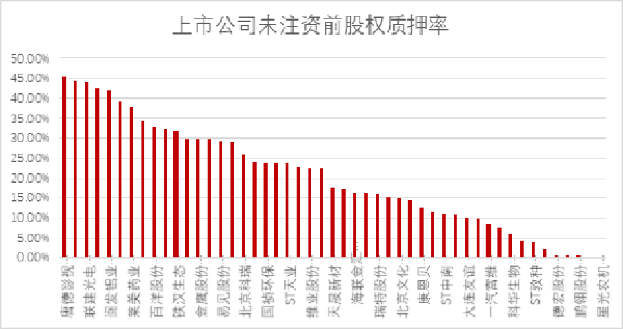 同時(shí),在經(jīng)濟(jì)增速放緩、國(guó)家政策傾向結(jié)構(gòu)性改革去杠桿以及國(guó)際貿(mào)易戰(zhàn)等情況下,上市公司大多承受著高比例股權(quán)質(zhì)押的重負(fù),其中,唐德影視更是高達(dá)45.59%。這就導(dǎo)致上市公司流動(dòng)性風(fēng)險(xiǎn)爆發(fā)的概率直接升高,因此,為緩解股票質(zhì)押爆倉(cāng)等潛在的風(fēng)險(xiǎn)而引入國(guó)資的機(jī)會(huì)也隨之增高。