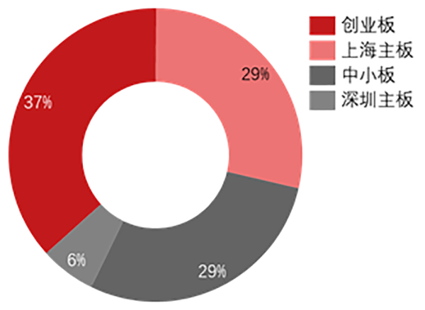 可以發(fā)現(xiàn)在49起國(guó)資入主案例中,創(chuàng)業(yè)板公司占到了最大的比例。因?yàn)閯?chuàng)業(yè)板公司當(dāng)中民營(yíng)企業(yè)數(shù)量較多,且2019年底創(chuàng)業(yè)板借殼上市放開(kāi),另外,這些公司以及其擁有的高新技術(shù)是目前國(guó)家政策改革傾向的主要方向。