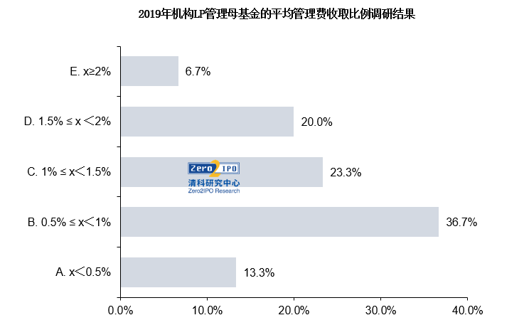 圖5:2019年機(jī)構(gòu)LP管理母基金的平均管理費(fèi)收取比例調(diào)研結(jié)果