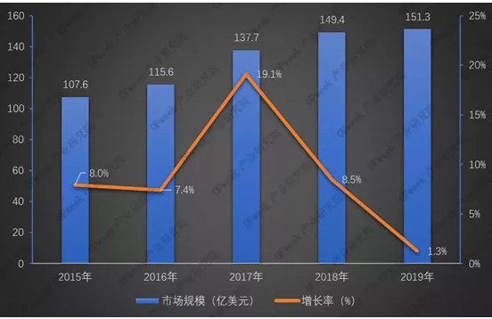 2015-2019年全球激光器市場規(guī)模及增長情況