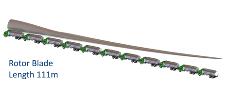 對于即將到來的11MW-15mw渦輪發(fā)電機組,德國aerodyn(埃若旦)公司預先設計了14MW、111m長的TC1B轉子葉片,該葉片采用CFRP-GFRP spar caps,以將昂貴的碳纖維的使用減少到最低限度。