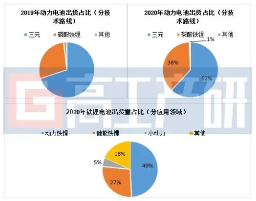 1)2020年中國鐵鋰動力電池市場占比同比增加8個百分點(diǎn),主要受比亞迪漢、鐵鋰版model 3以及宏光mini EV等車型銷量帶動;