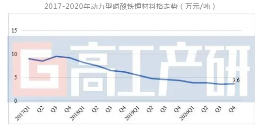 從磷酸鐵鋰材料價(jià)格走勢看,2020年磷酸鐵鋰材料價(jià)格整體呈下降走勢,原因有: