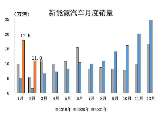 2.新能源汽車2月銷量同比增長5.8倍,達(dá)到11萬輛