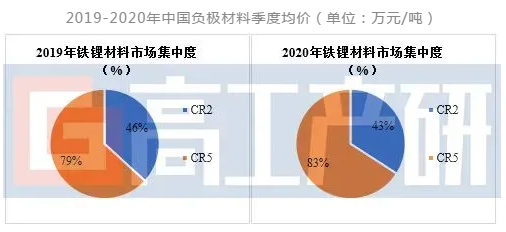 2020年鐵鋰材料市場呈現(xiàn)以下特點(diǎn):1)頭部企業(yè)市場集中度下降;2)二線企業(yè)市場總集中度上升,市場均衡性提升;3)頭部企業(yè)不再成為一家獨(dú)大。