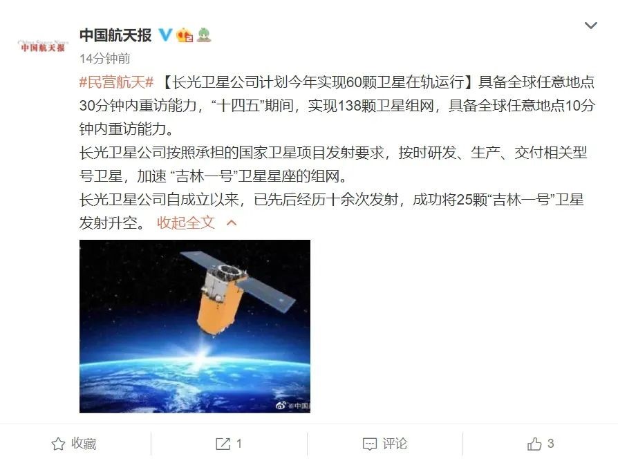 長光衛(wèi)星表示,將在 “十四五”期間實(shí)現(xiàn) 138 顆衛(wèi)星組網(wǎng),未來能夠?qū)崿F(xiàn)全球任意地點(diǎn) 10 分鐘重坊能力,建成覆蓋全球的高精度光學(xué)監(jiān)測網(wǎng)絡(luò)。