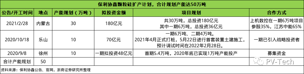 (1)顆粒硅供給:規劃產能超50萬噸,協鑫和上機數控合資建30萬噸