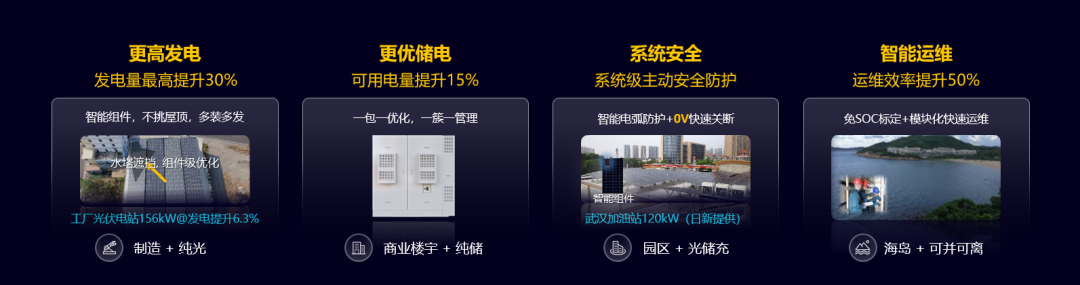 通過智能組件和智能組串式儲能真正做到開源節流,在提升發電量最高達30%的同時,儲能可用電量提升15%;在系統側,將安全做到極致,如通過智能電弧防護及快速關斷技術為武漢某加油站帶來更安全可靠的電站。