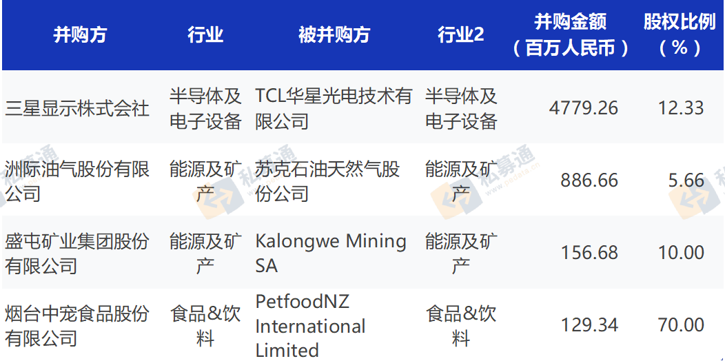 (3)本月金額較大的國(guó)內(nèi)并購(gòu)典例: