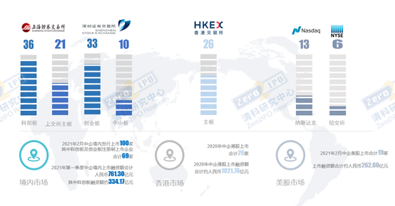 圖2 2021年一季度中企境內(nèi)外上市分布(按上市板塊)