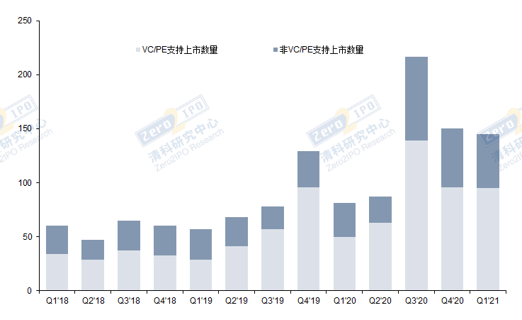 圖6 2018Q1-2021Q1VC/PE支持IPO與非VC/PE支持IPO對比