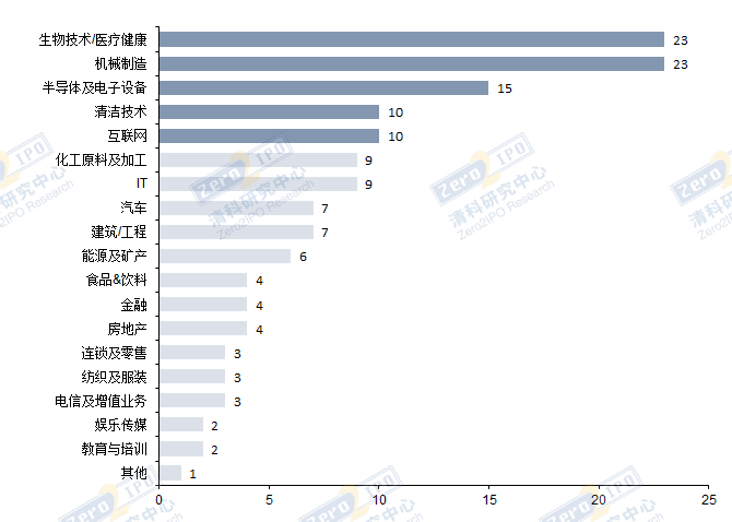 生物技術(shù)/醫(yī)療健康和機(jī)械制造行業(yè)IPO數(shù)量領(lǐng)先